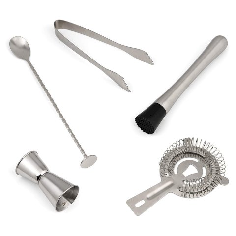 10pc Cocktail Maker Set Shaker Glass Twisted Bar Spoon Strainer Wood Muddler